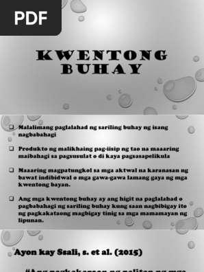 Ang Kwentong Buhay Bilang Teksto ng Pagsasakapangyarihan ng mga Manggagawa sa Bahay - iskomunidad. When pain is shared it reduce to half when happiness is shared it is doubled May mga bahagi sa ating buhay na kaysarap ibahagi mga kaganapan na pumupukaw sa ating mga problema sa buhay kahit isang saglit lang na kasiyahan ang nakamtan habang buhay naman na nagbibigay nitong ngiti sa ating mga labi. Ang maikling kwento ay isang anyo ng panitikan na may layuning magsalaysay ng mga pangyayari sa buhay ng pangunahing tauhan.
