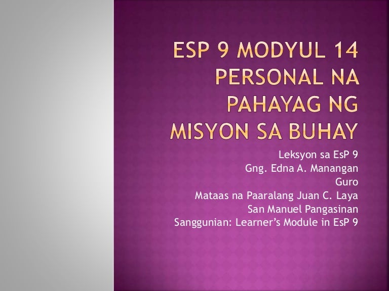 Es P 9 Modyul 14 Personal Na Pahayag Ng Misyon Sa Buhay