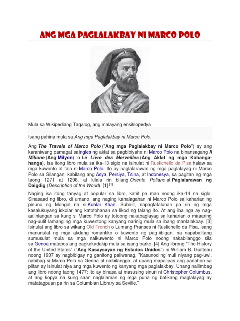 At tayoy nahahaharap sa isang hamon tulad ng mga kaibigan ni Marco Polo. Talambuhay ni marco polo. Maikling Talambuhay ni Marco Polo sa Wikang Tagalog.