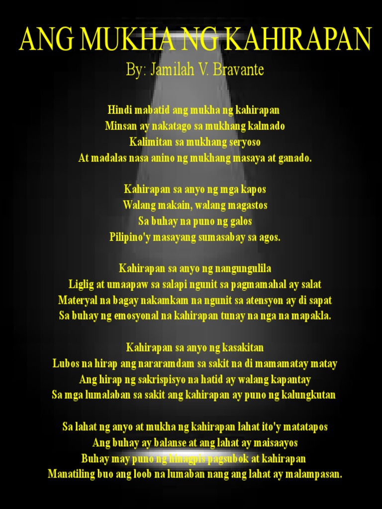 Kailangan ang lahat ng isusulat mo dito ay ispisipiko. Families who have loved ones buried in St. He has a notion that life is a voyage.